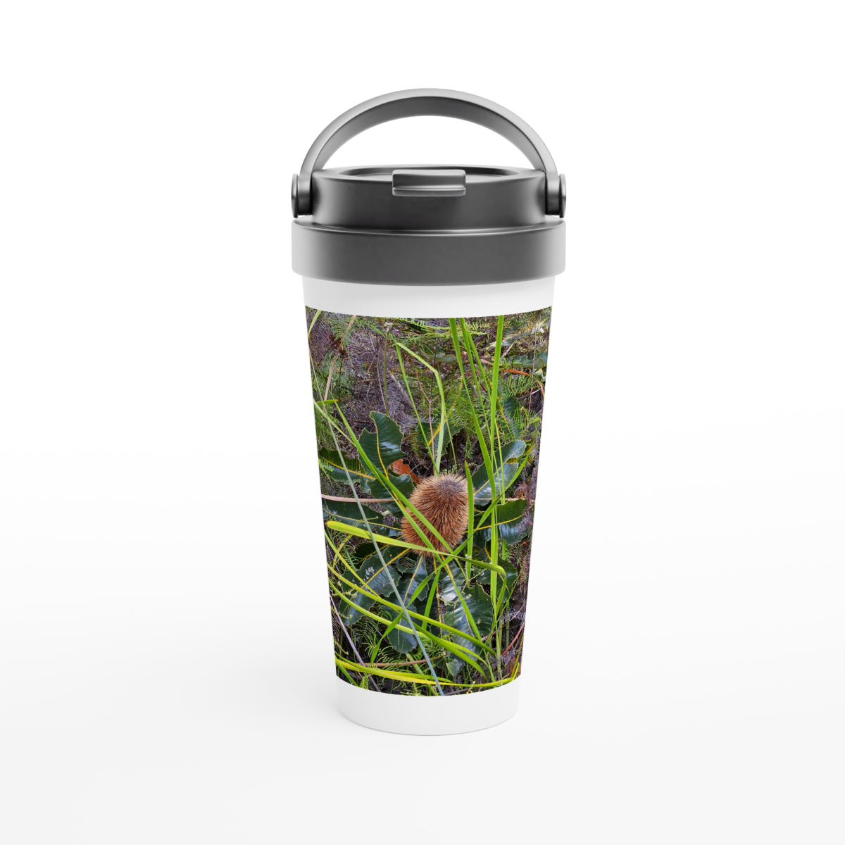 Dried Banksia Flower With Green Leaves White 15oz (443ml) Stainless Steel Travel Mug.