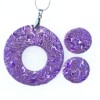 Polymer Clay Mokume Gane Purple, White Pendant Stud Earring Set