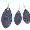 Polymer Clay Mokume Gane Purple White Diamond Shape Pendant Stud Earrings.