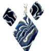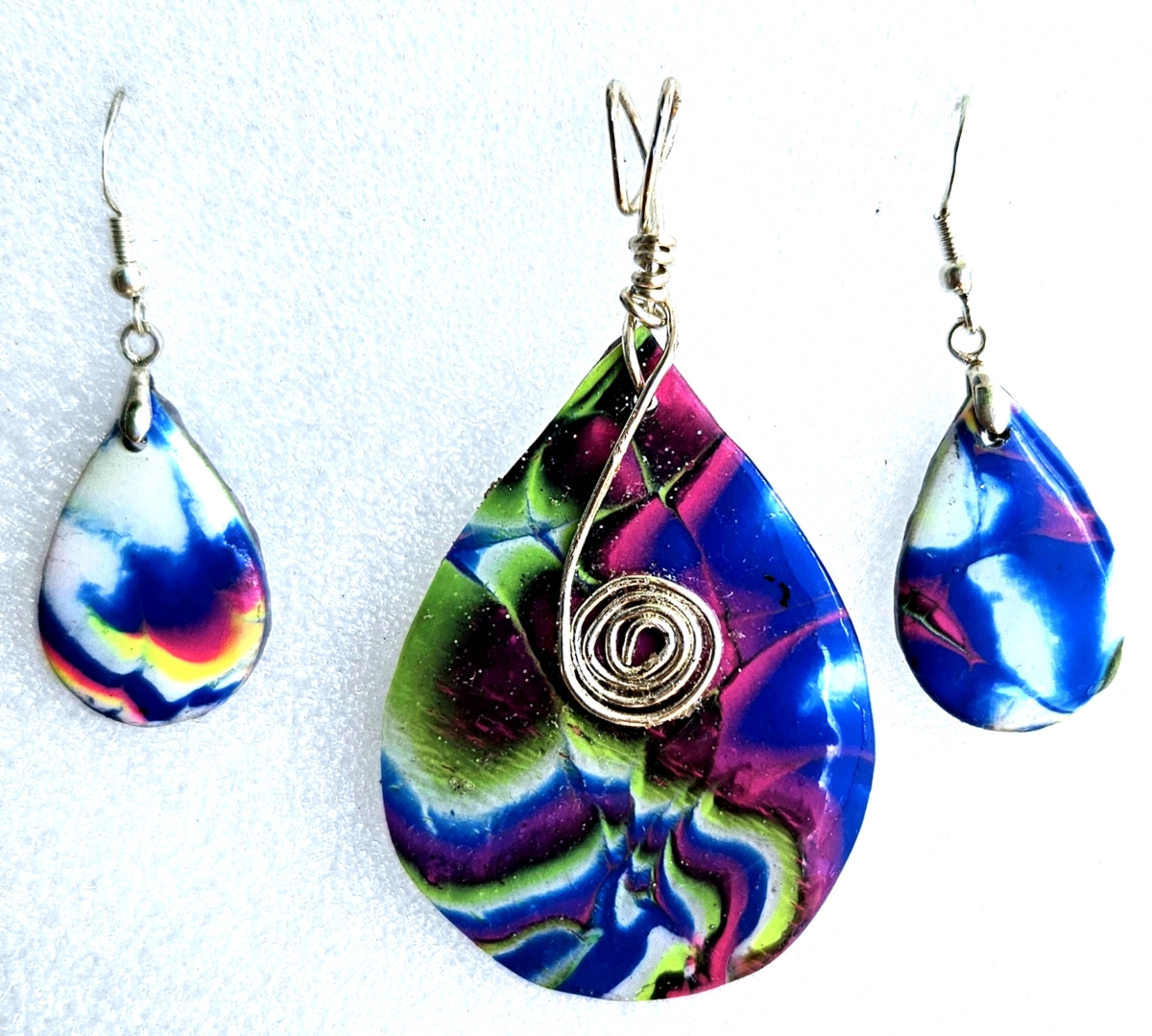 Polymer Clay Mokume Gane Swirl Blue Pink Green Pendant Earring Gold Set #4